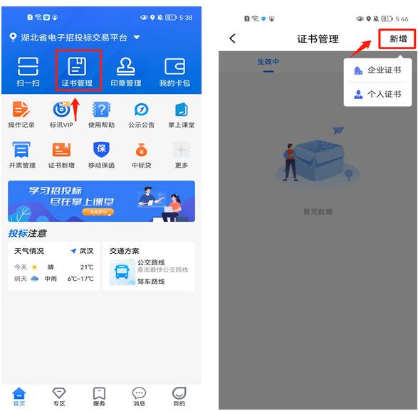 实名认证通过后点击首页中上方【证书管理】跳转至【图2】,点击【新增】;