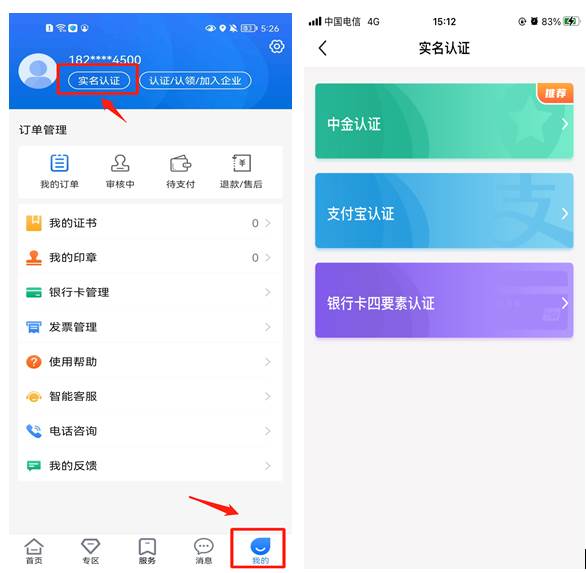 首次登录的账号点击首页底部【我的】页面中【实名认证】按钮,进行实名认证,如下图所示。