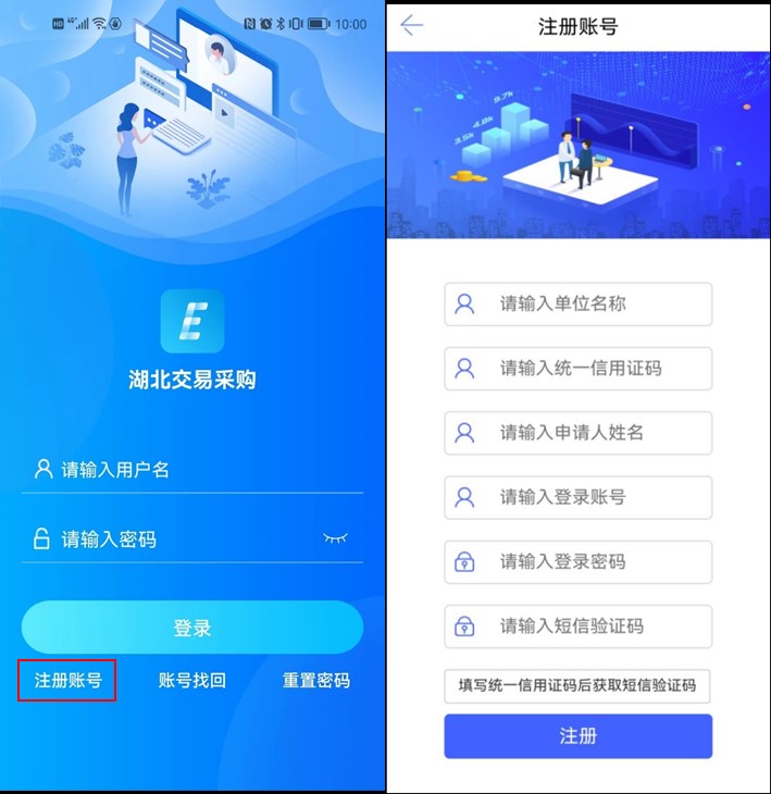1、用户先登录到湖北省电子招投标交易平台,点击【单位信息】-【APP账号管理】,按照文字提示信息新增账号,该账号即可登录湖北交易采购APP。
