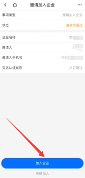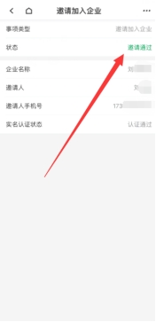 4、实名认证已完成情况下,被授权人打开标证通——消息——企业通知——邀请加入企业——加入企业——显示【邀请通过】就是成功加入企业了